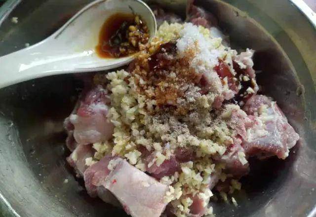 1、把買回來的排骨清洗干凈,洗好之后撈出控干多余的水分裝入容器中,再加入適量的姜末、蒜末、蠔油、生抽、鹽、料酒、胡椒粉,將調料都放好后拌均勻擱置1個小時,讓排骨腌制入味。(買排骨的時候可以讓豬販子幫忙砍一下,這樣拿回來就不用自己砍了,直接放水里洗。)